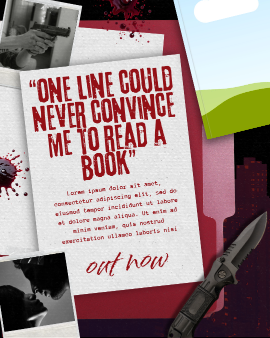 Keywords: dystopian, knife, blood, bloody, one line, highlights, convincing you to