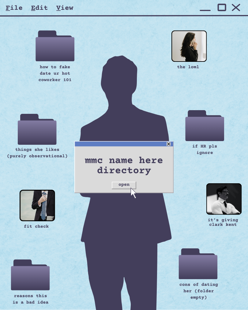 Keywords: workplace, coworkers, office, computer screen, computer files, file folder, character, directory