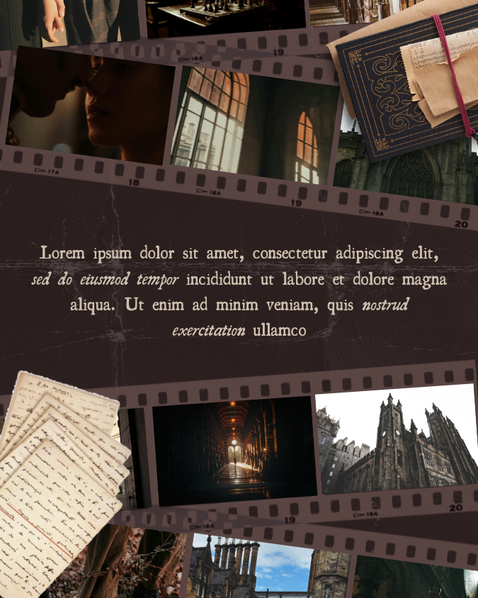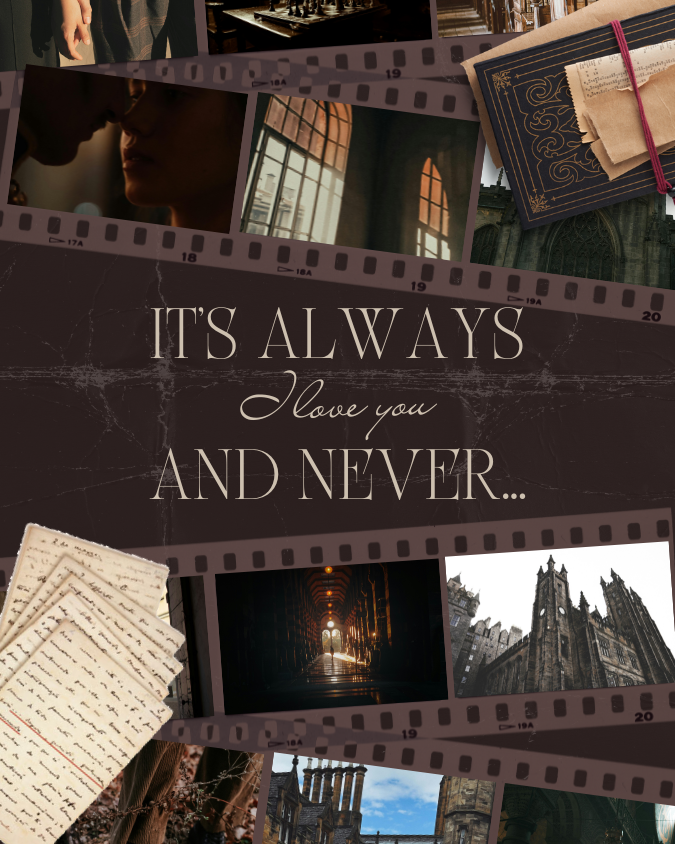 Keywords: dark academia, fantasy, characters, its always i love you and never, moodboard