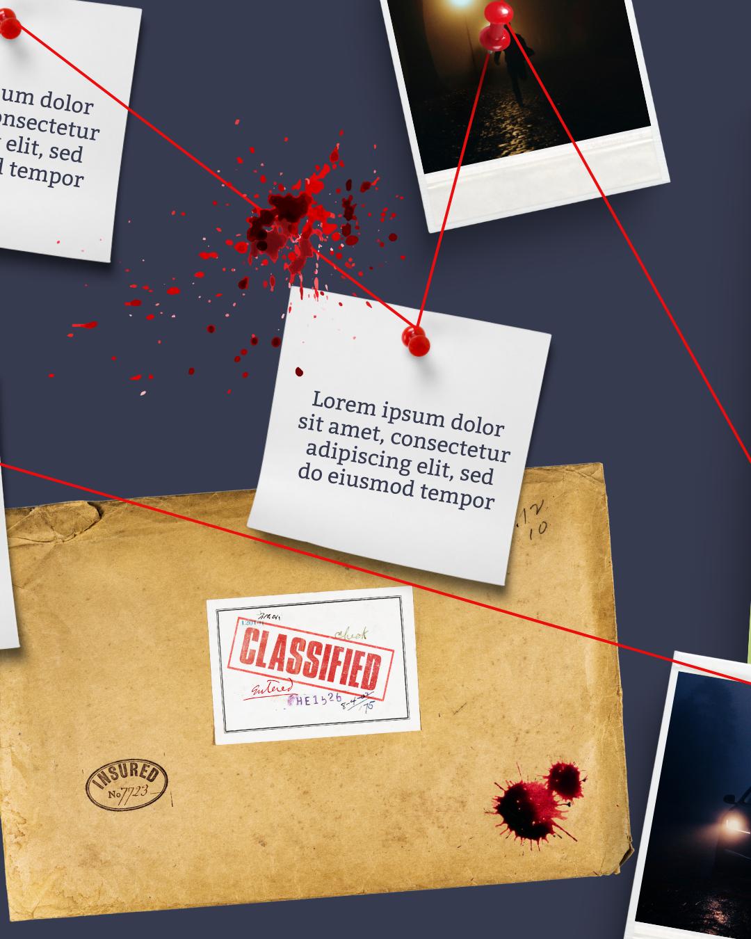 Keywords: thriller, murder, crime, detective board, seamless carousel, mystery